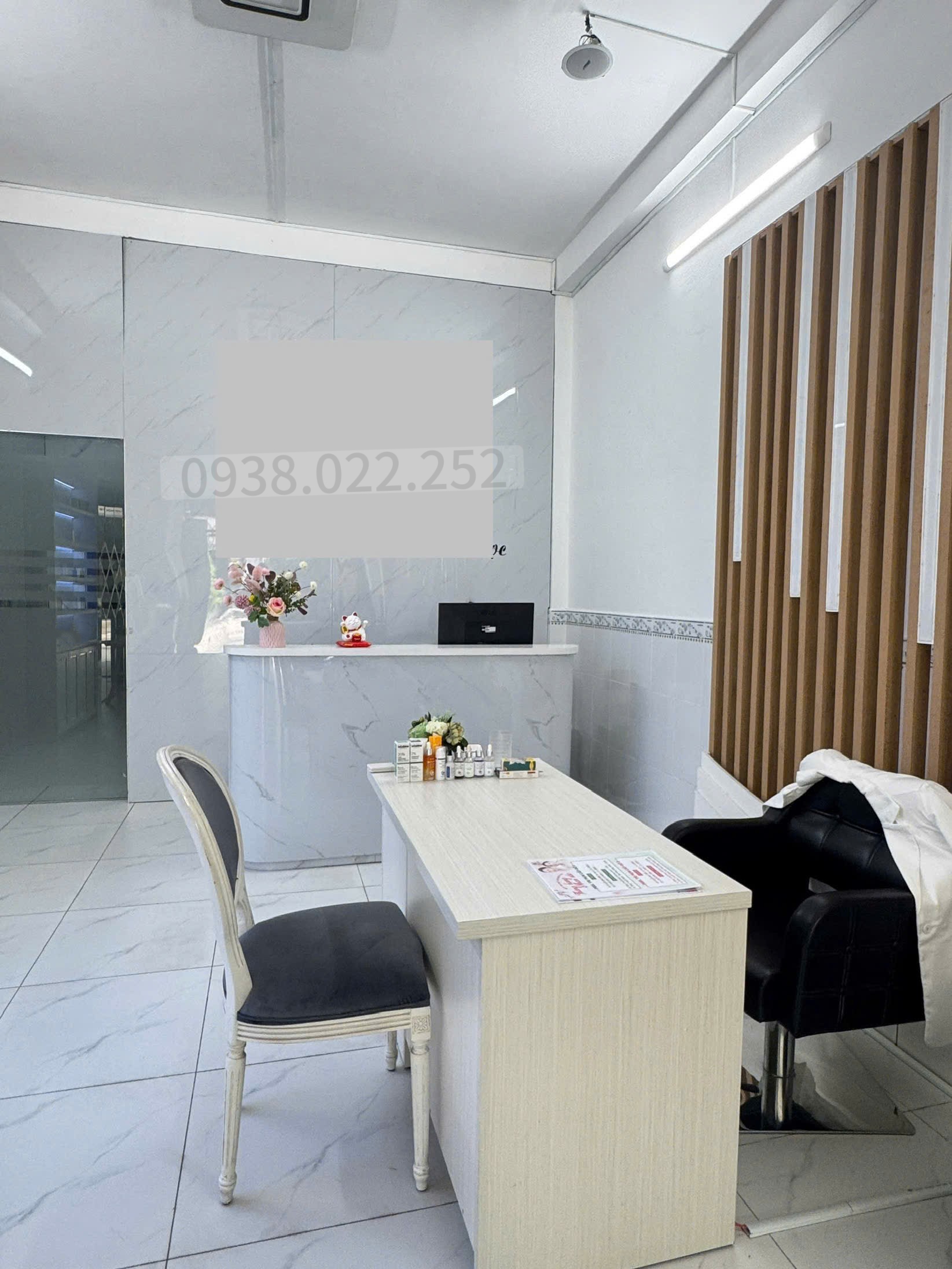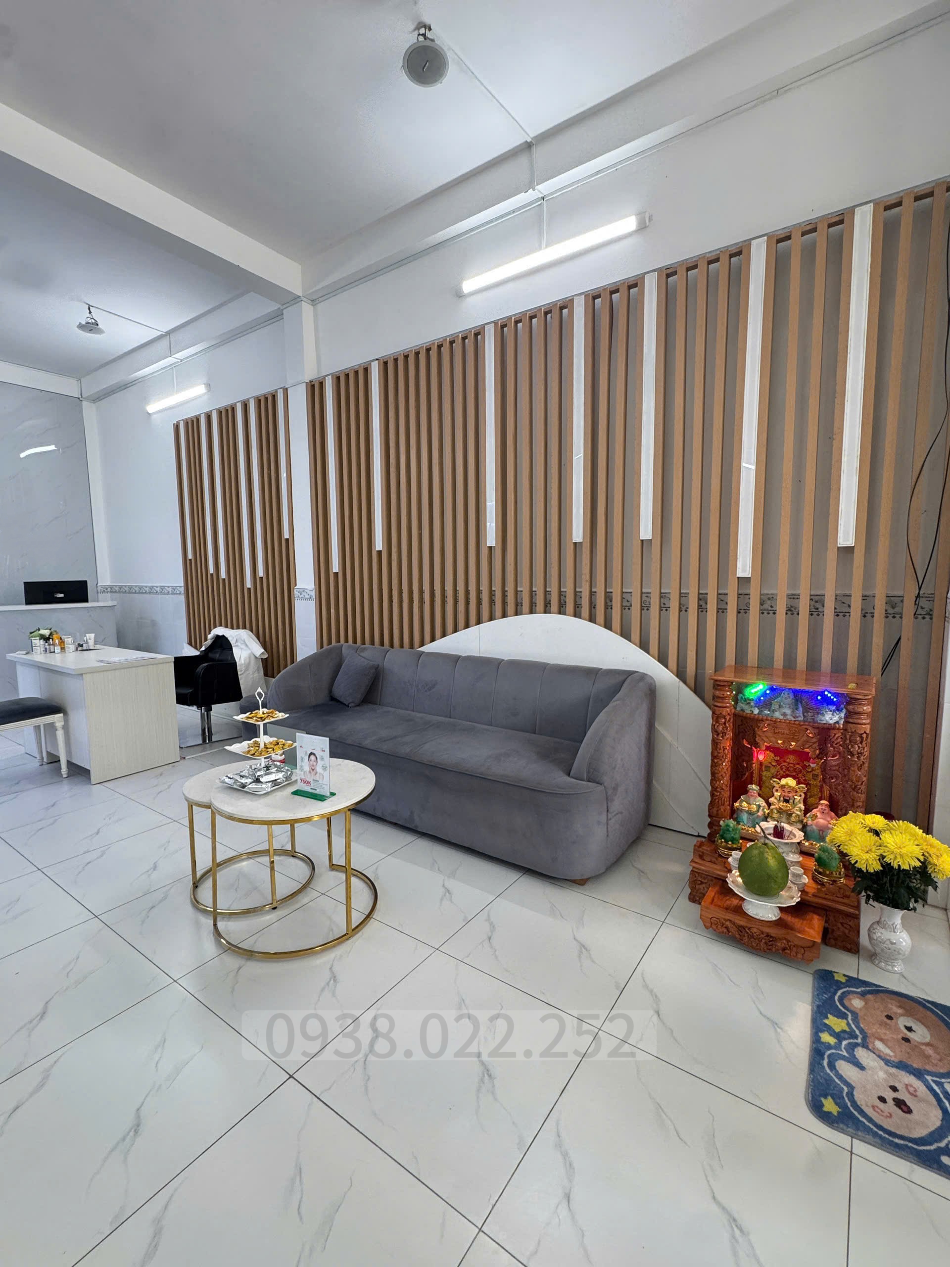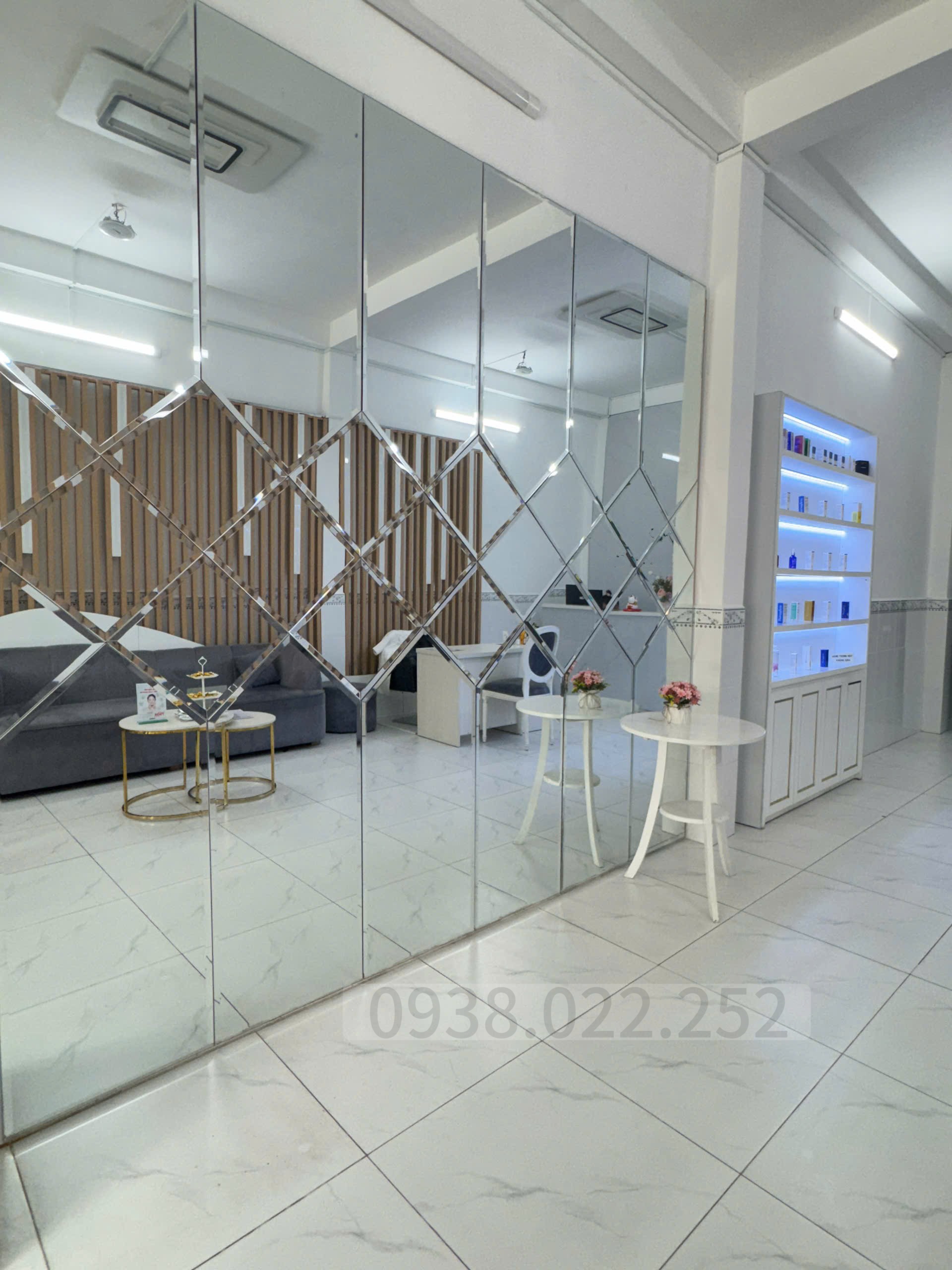 Nội thất: quầy lễ tân, tủ mỹ phẩm, máy tính bàn, sofa, bàn ghế, máy lọc nước, tủ lạnh…