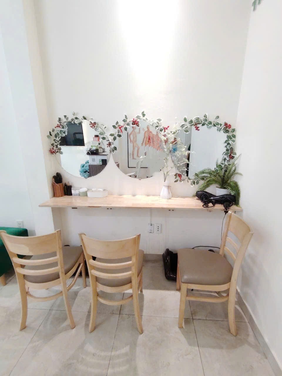 ✔ Kính soi – bàn sấy tóc + ghế tựa